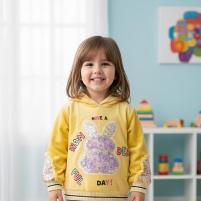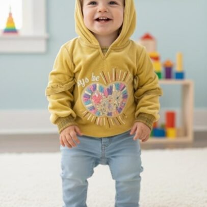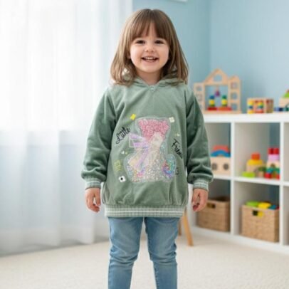 Baby girl velvet hoodie with flurry hood and sleeves