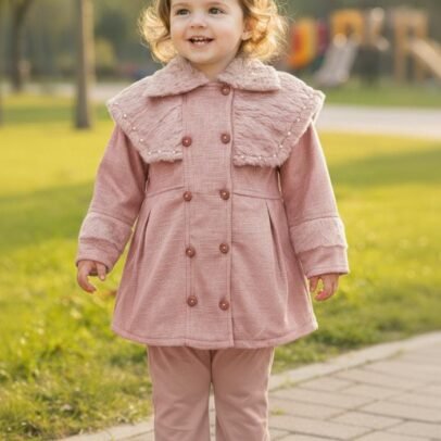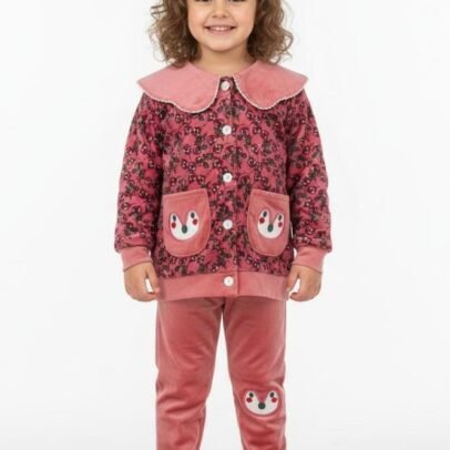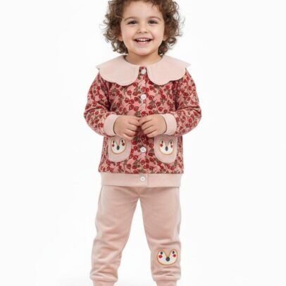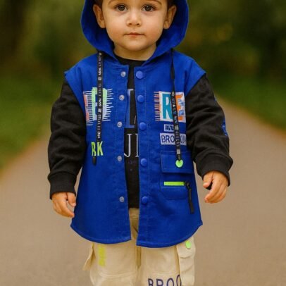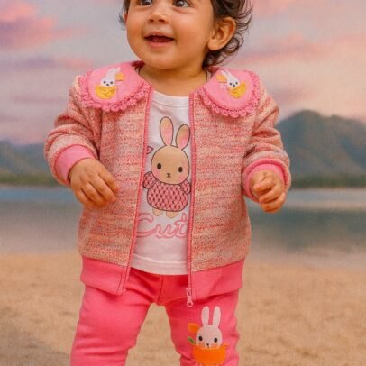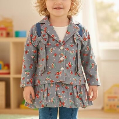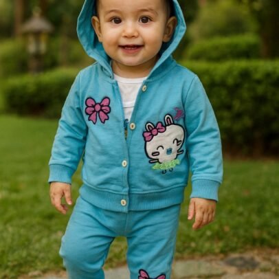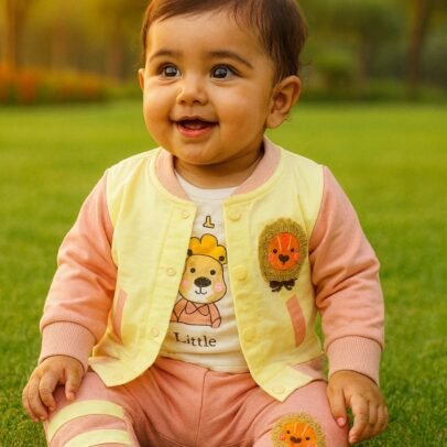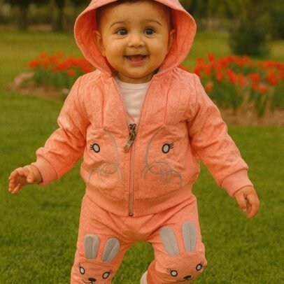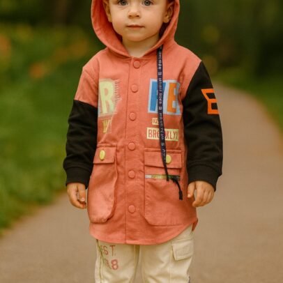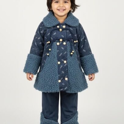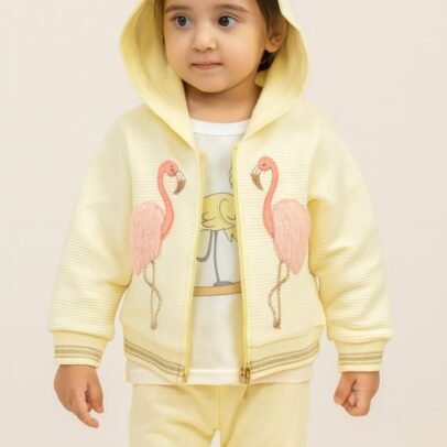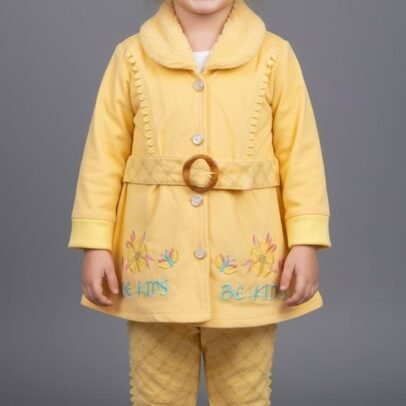 Kids 3pc hooded upper dress -Baby girl printed inner dress