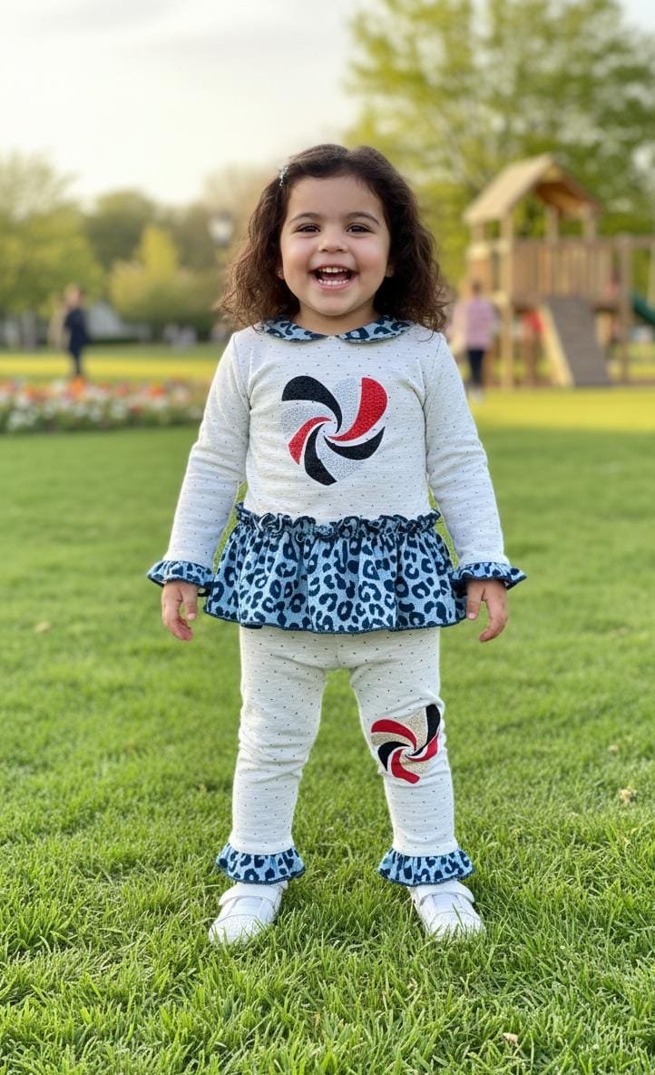Trendy 2pc stylish dress for girls featuring a chic cheetah print with elegant stone work on the front. Soft, comfortable, and perfect for stylish winter and casual outings.
