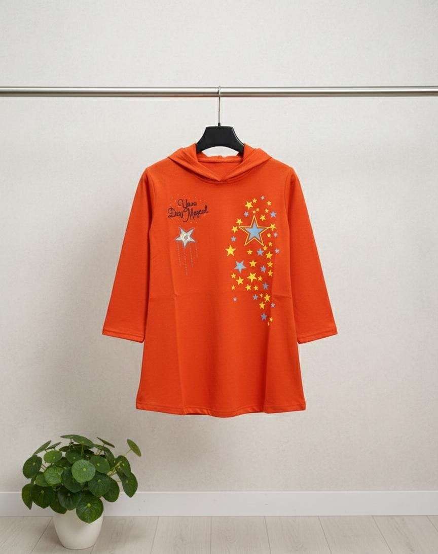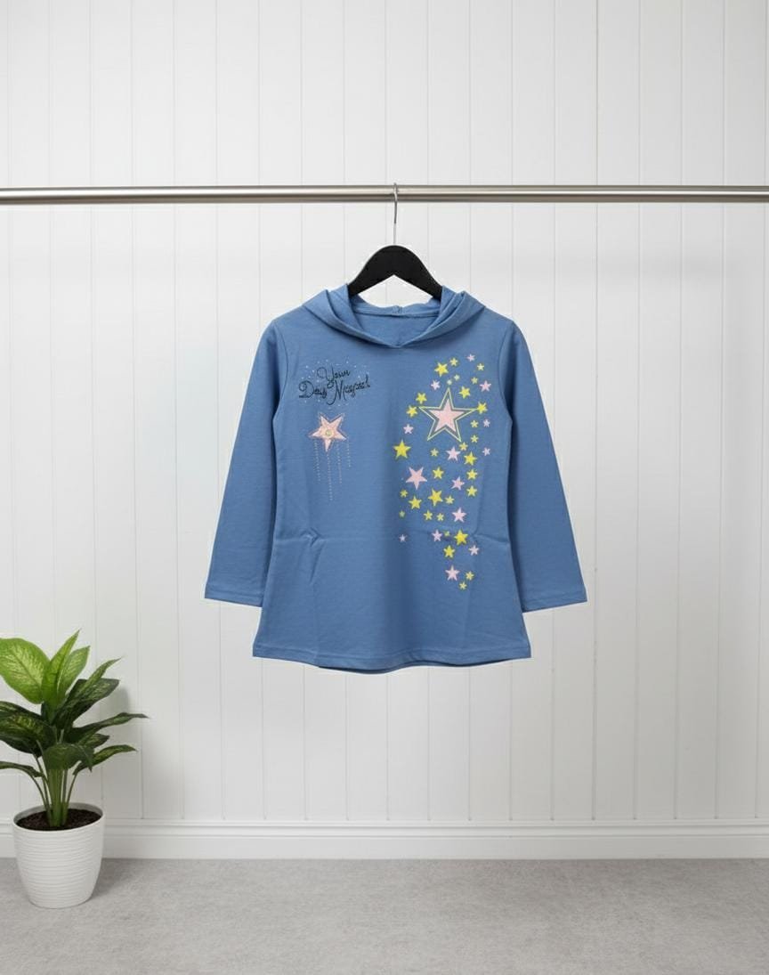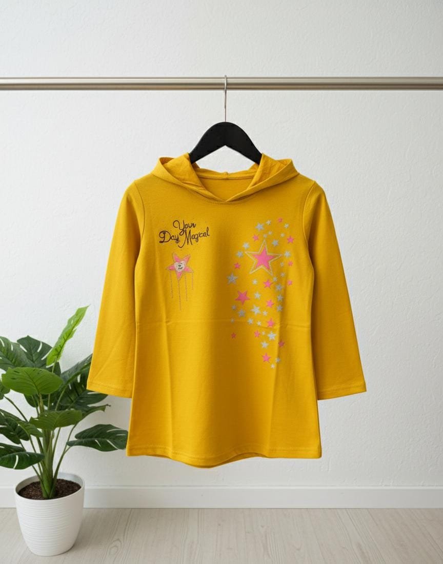 Add a touch of charm to your little one’s wardrobe with this Magic Star Print Hooded Shirt for Girls.